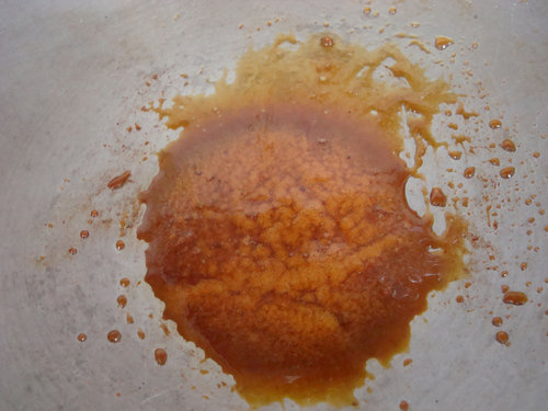 2. 原鍋中 放入1小匙油,在放入冰糖小火慢慢攪拌,