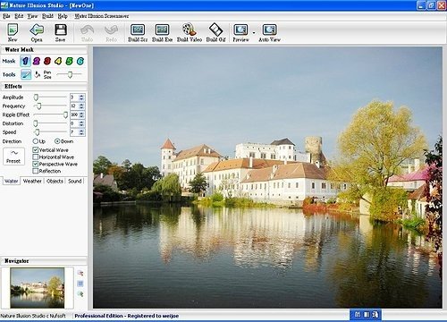 Nature.Illusion.Studio,一款很有趣的圖像處理加工程式,可給你的假日風景圖片(其實發揮想像,想怎麼加就怎麼加:)加上下雨,下雪等效果,並提供九種預置的方案,只需看一下提供的範例就能上手,操作簡單,發揮您天馬行空的想像,即可將處理過的圖像存為屏保,可選擇程式,壓縮為AVI 文件,和產生動畫 GIF 文件,並能為它加上聲音效果,給你靜止的圖片添加動感的元素。